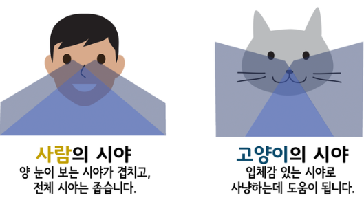 마지막으로 고양이는 두 눈으로 인식하는 범위가 제한적인데요.