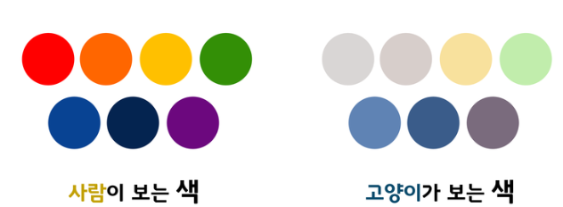 저 또한 단순히 고양이에게는 흑백 색상만 보이는 정도만 알았던 내용이